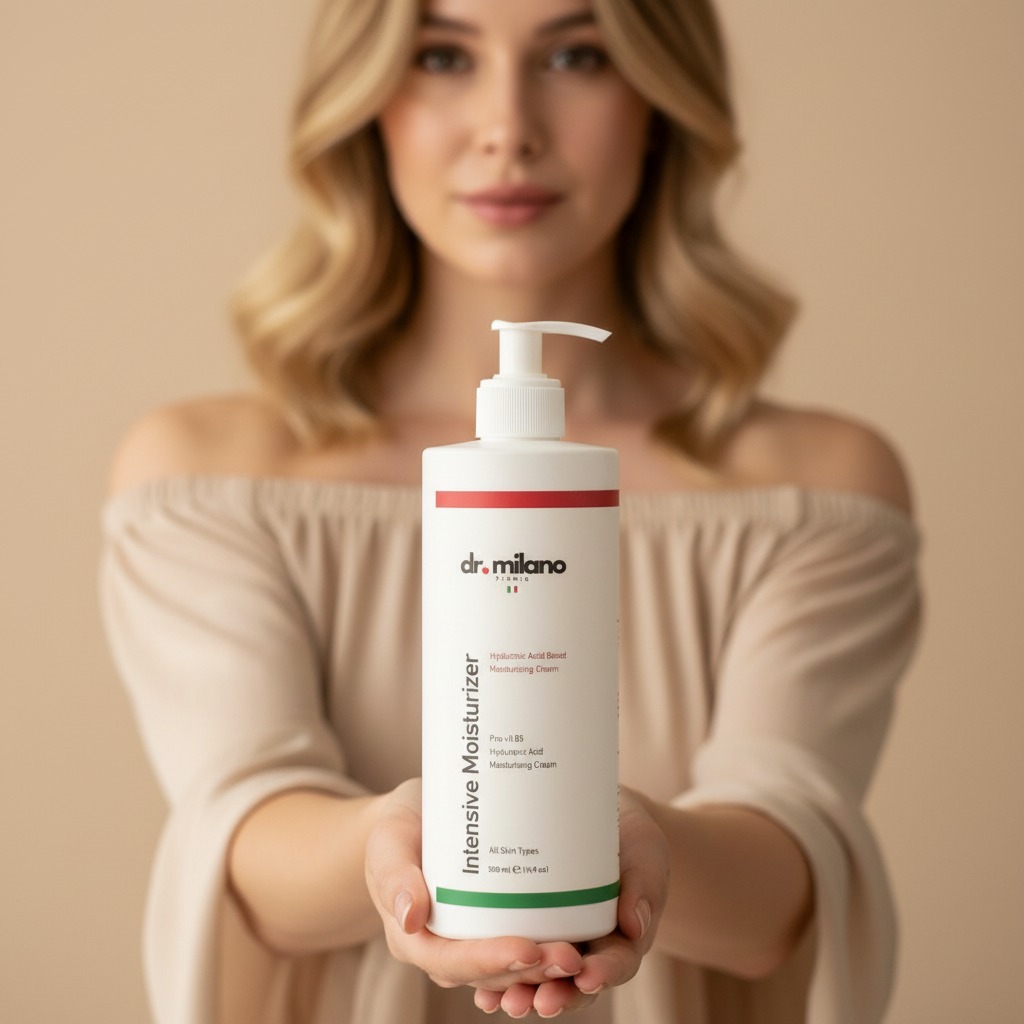Cildinizin hak ettiği lüks dokunuş: Dr. Milano Yoğun Nemlendirici Krem. Zengin ve kadifemsi formülü, cildinizi derinlemesine besler, nem dengesi sağlar ve gün boyu pürüzsüz, ipeksi bir his bırakır.